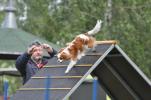 | Dlouho chystané a pečlivě připravované závody jsou za námi. Účast našich týmů byla hojná, nasadili jsme do boje celkem 12 týmů, z toho 5 SA, 2 MA a 5 LA. Konkurence byla silná, ale i přesto jsme se nedali a obsadili několik medailových pozic – 1. místo patří Ritě s Luckou ve zkoušce MA1, 3x druhé místo získala Hela s bretaňkami a na 3. místě se umístila Zuzka s Iriskou, Hela se Cínnou a plaketu za 3. místo ve finále obdržela Janča s Lottkou. Disků bylo nepočítaně, v mnoha bězích zvítězil pan rozhodčí a tak každý doběhnutý závod je pro nás úspěchem, neboť v našich řadách jsou převážně začátečnické týmy, které mají svou agiliťáckou kariéru teprve před sebou. Parkury Zdeňka Spolka byly zajímavé, určitě máme další inspiraci pro naše tréninky. Také jsme si ověřili, že pro některé psy je dvoudenní maraton nad jejich síly, zato musím pochválit všechny, kteří bezvadně pomáhali při organizaci závodů, protože díky tomu vše jelo jako po másle. Díky fotografům, kteří se vystřídali u Ivanova foťáku, máme i množství povedených fotografií na památku. Snad byla většina účastníků závodů spokojená, že si užili nejen tunýlkové řádění, a ti úspěšní mají radost z cen našeho sponzora Hill´s. Ke spokojenosti určitě přispívá i krásné prostředí autokempu v Píšťanech a nakonec i to počasí vydrželo. Měli jsme radost z množství kelpinek, které měly v rámci závodů svůj šampionát a MR kelpií, a ukázaly, že mají velmi dobré předpoklady prosadit se v konkurenci. Za uskutečnění tunelového rodea patří dík Ivanovi a klubům ochotným půjčit a dovézt své tunely. Všechny fotografie zde: veteran-ivan.rajce.i… |