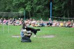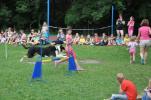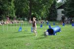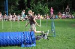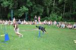Několik zástupců z našeho klubu předvedlo se svými pejsky v úterý 31.7.2012 dětem v táboře v Peruci, jak cvičíme agility. Ukázky děti zaujaly, ale ještě více je nadchlo, když si s našimi pejsky mohly samy vyzkoušet běh po parkuru. Statečný Ozzyk, neúnavná Naffi, poslušná Molča, uštěkaná Meggi a stále veselá Dája se neustále střídali na trati a trpělivě za pamlsky plnili povely všech dětí. Andy také zkusil běh s novým psovodem, ale bez Terezky se mu to moc nezamlouvalo. Jíťa se Cindy dětem zatančily i agilitily, Dája neúnavně aportovala a pak už jsme úplně vyčerpané pejsky radši odvezli domů. Museli jsme ale slíbit, že zase někdy přijedeme.